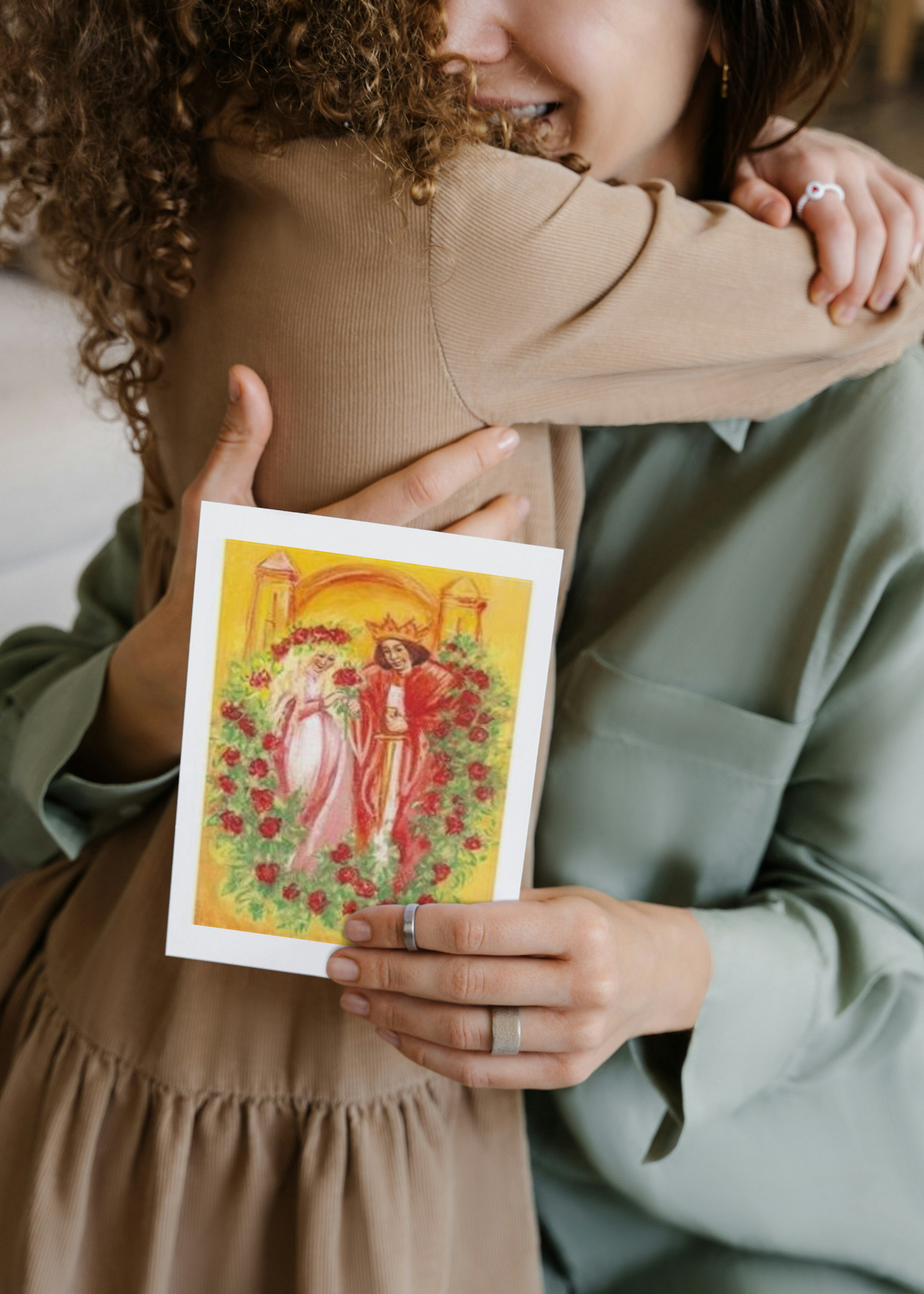 Sprekende, sprookjesachtige kaart van Doornroosje. Geschikt om te verzenden, maar ook heel sfeervol op je seizoenstafel of in een kaartenstandaard!