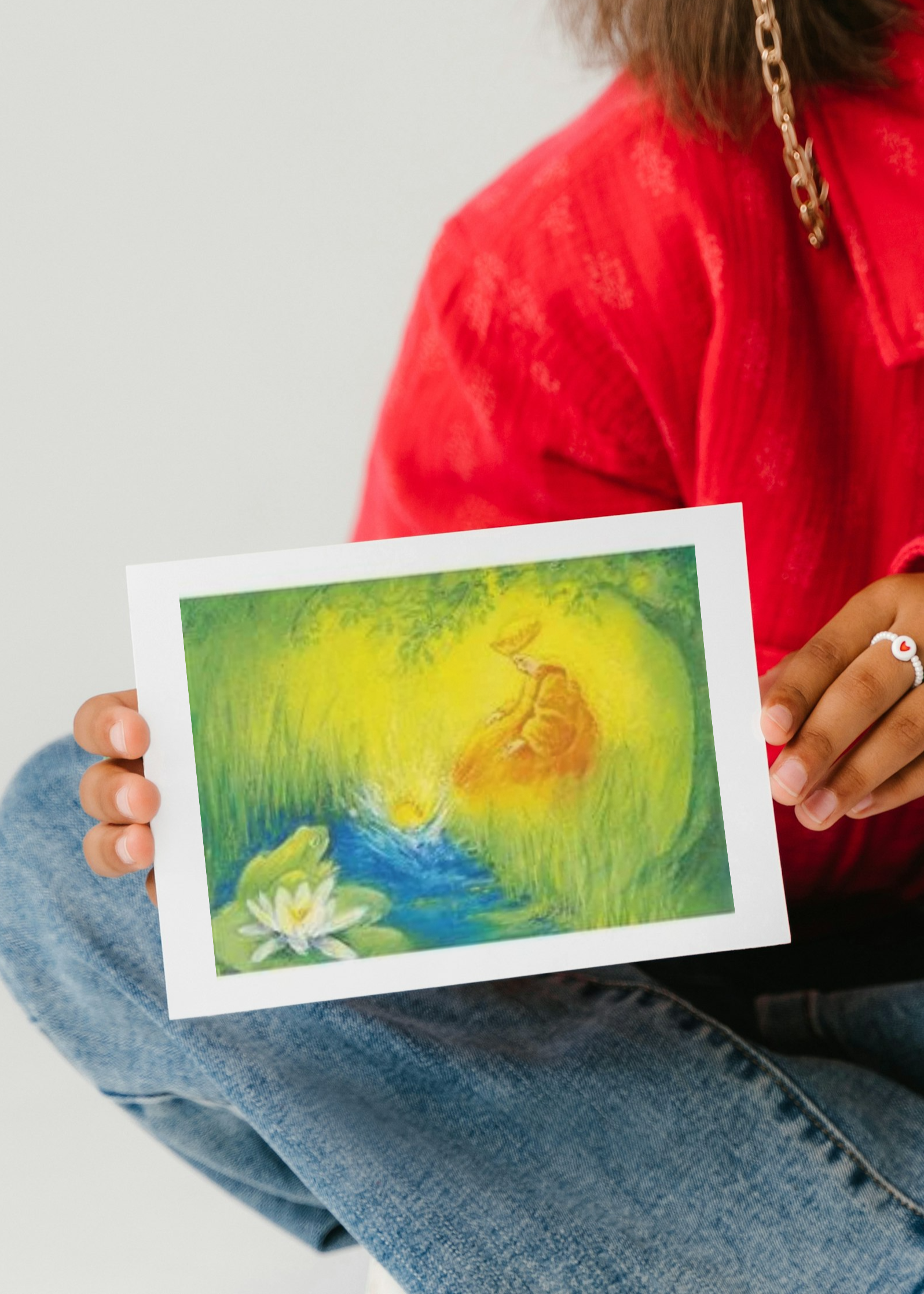 Sprekende, sprookjesachtige kaart van de Kikkerkoning. Geschikt om te verzenden, maar ook heel sfeervol op je seizoenstafel of in een kaartenstandaard!