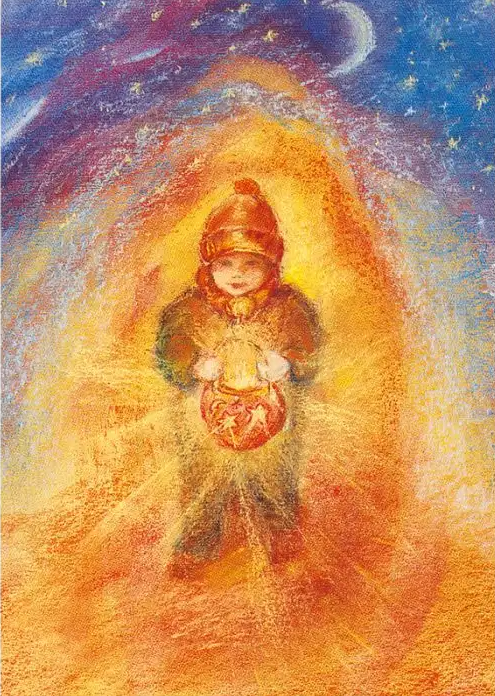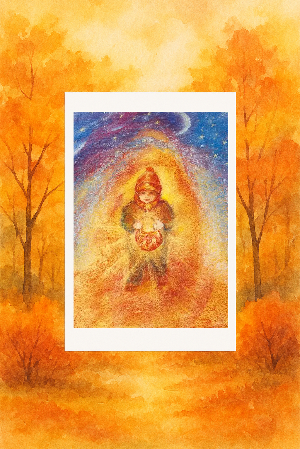 Sprekende, sprookjesachtige kaart van een kind dat een Sint Maarten lantaarn draagt. Geschikt om te verzenden, maar ook heel sfeervol op je seizoenstafel of in een kaartenstandaard!
