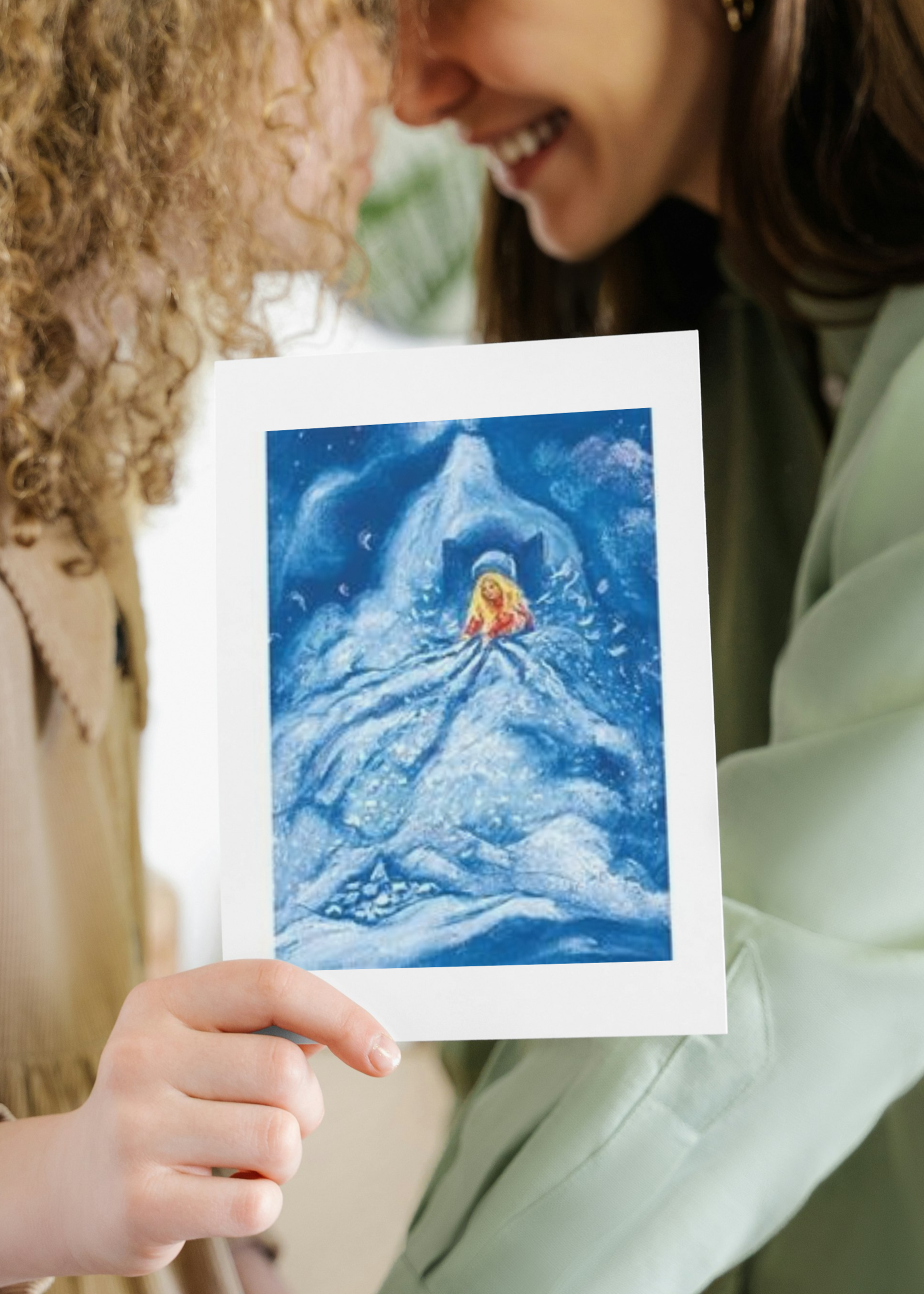 Sprekende, sprookjesachtige kaart van Vrouw Holle. Geschikt om te verzenden, maar ook heel sfeervol op je seizoenstafel of in een kaartenstandaard!
