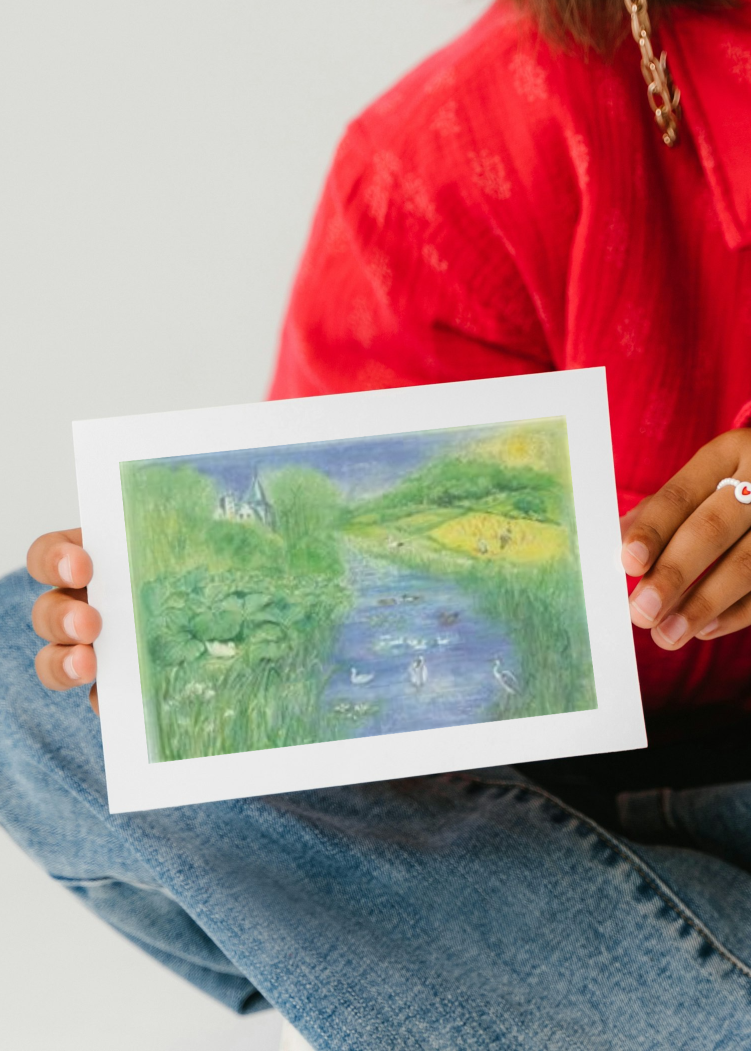 Sprekende, dromerige ansichtkaart in zomerse sferen. Geschikt om te verzenden, maar ook heel sfeervol op je seizoenstafel of in een kaartenstandaard!